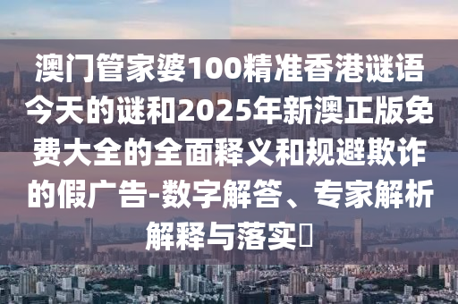 澳门管家婆100精准香港谜语今天的谜和2025年新澳正版免费大全的全面释义和规避欺诈的假广告-数字解答、专家解析解释与落实​