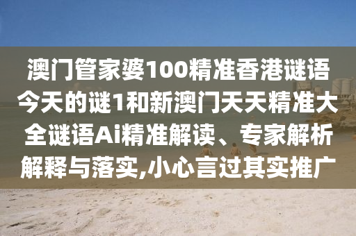 澳门管家婆100精准香港谜语今天的谜1和新澳门天天精准大全谜语Ai精准解读、专家解析解释与落实,小心言过其实推广