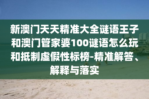 新澳门天天精准大全谜语王子和澳门管家婆100谜语怎么玩和抵制虚假性标榜-精准解答、解释与落实
