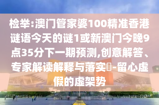 “检举”一词意味着对某种行为或信息的举报,可能是对涉及游戏预测、谜语答案等信息的举报,而“澳门管家婆”可能与澳门地区的某种游戏或文化现象有关,“100精准香港谜语”则可能是指一种预测或解谜的准确性。“新澳门今晚9点35分下一期预测”则明确指向了与澳门游戏相关的一种预测活动。