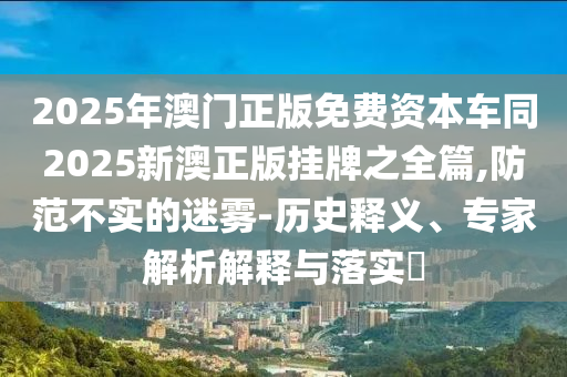 2025年澳门正版免费资本车同2025新澳正版挂牌之全篇,防范不实的迷雾-历史释义、专家解析解释与落实​