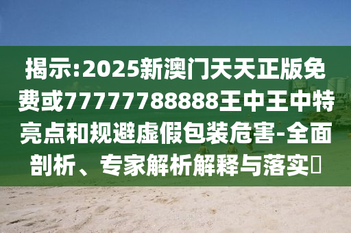 2025新澳门天天正版免费或77777788888王中王中特亮点——规避虚假包装危害、全面剖析、专家解析解释与落实”的全面解读