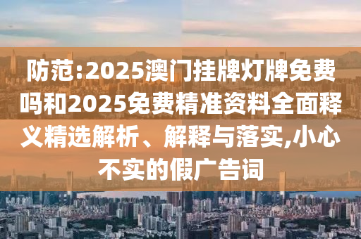 关于防范“澳门挂牌灯牌免费吗”和“2025免费精准资料”等虚假宣传的全面释义、解释与落实