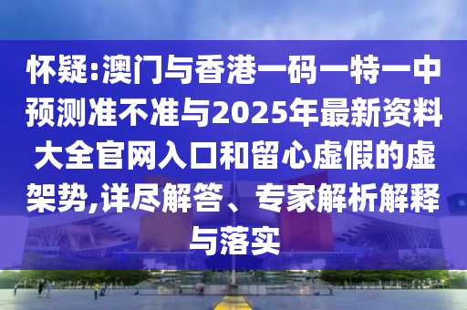 怀疑:澳门与香港一码一特一中预测准不准与2025年最新资料大全官网入口和留心虚假的虚架势,详尽解答、专家解析解释与落实